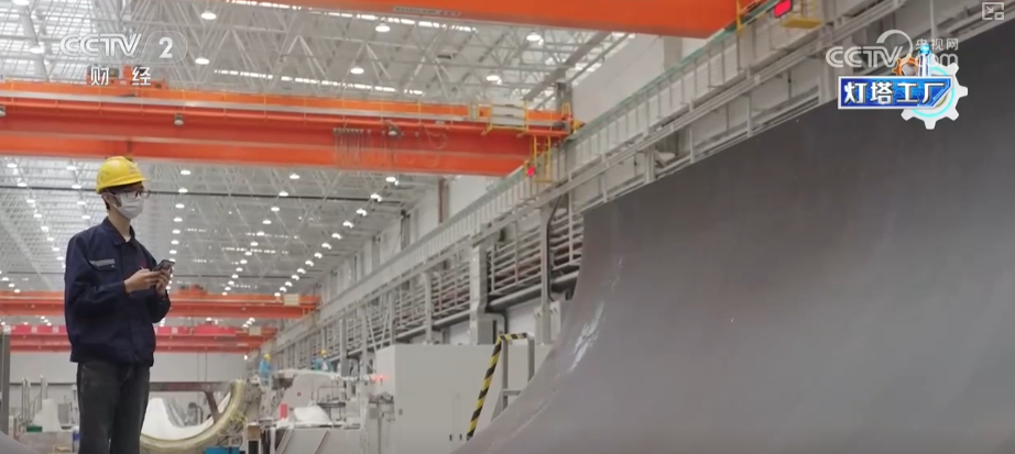 这里是湖南韶山这个的叶片工场,这个大师伙就是风机叶片。目前,这家“灯塔工场”最长能够出产118米的叶片。像如许的一只百米级叶片,出产时间也从本来的平均40多个小时,缩短到现正在的30个小时摆布。