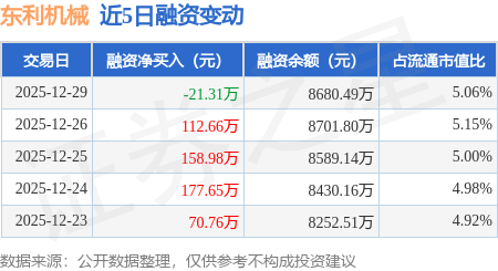 证券之星动静,12月29日,东利机械(301298)融资买入407。34万元,融资428。65万元,融资净卖出21。31万元,融资余额8680。49万元,近20个买卖日中有13个买卖日呈现融资净买入。